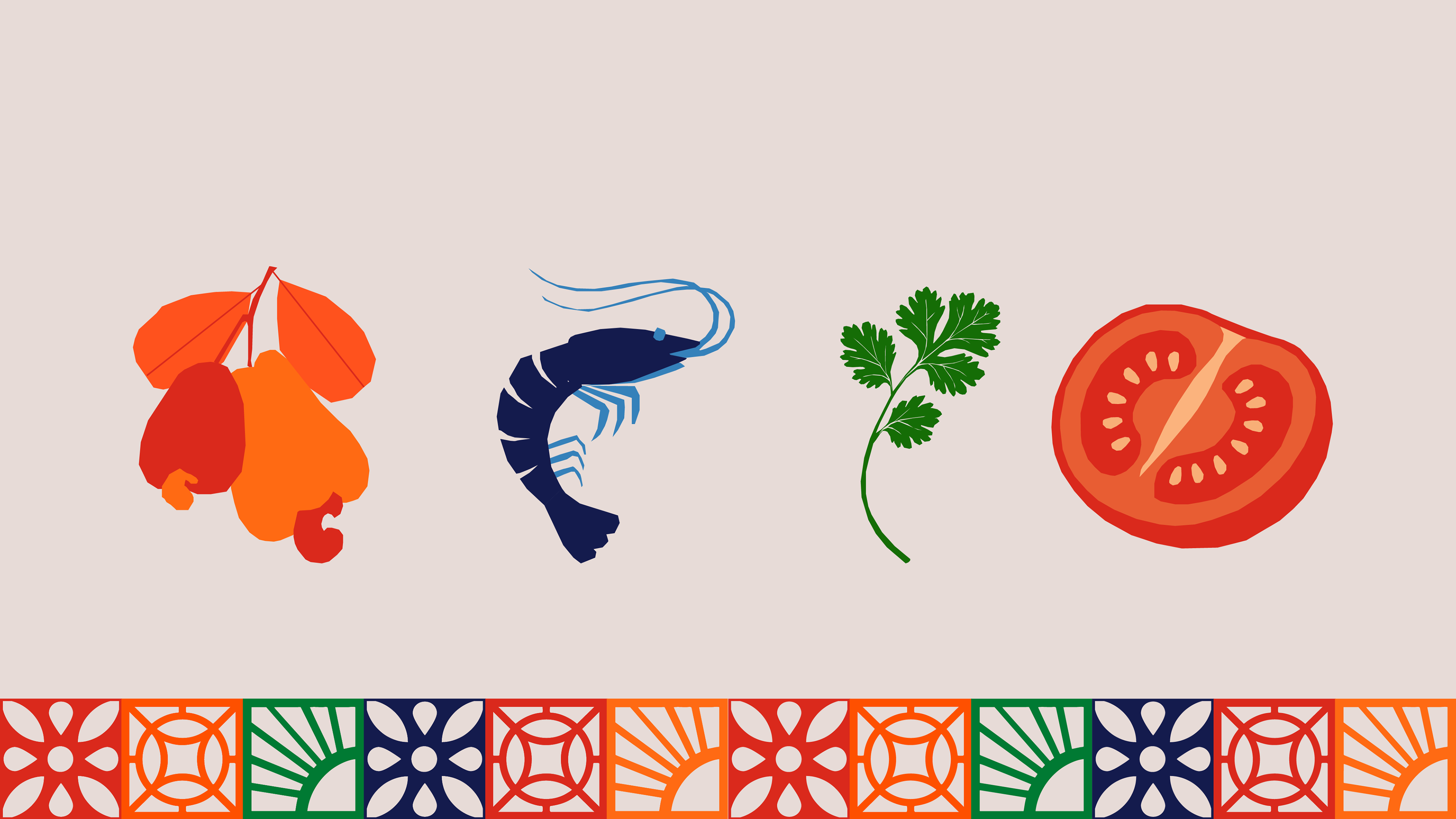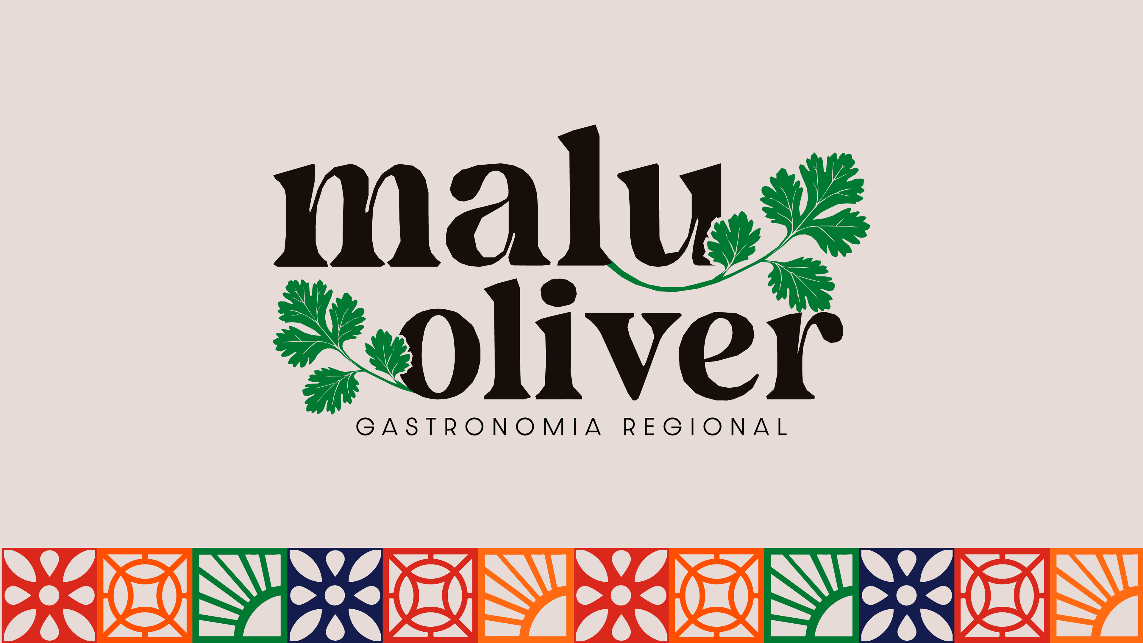 The bold typography, paired with vibrant and earthy tones, is enriched by the green of cilantro leaves, a key symbol of regional cuisine, which brings a fresh and organic feel to the identity. Additionally, the colorful tile-inspired grid reinforces the rich diversity of local culture through geometric harmony.