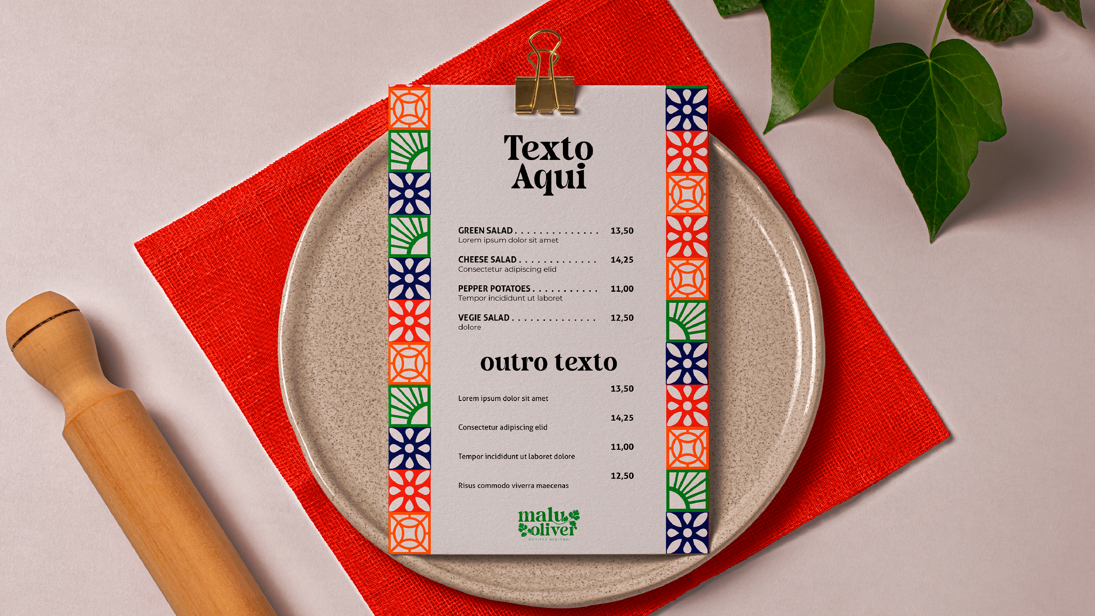Malu Oliver is a regional cuisine restaurant located in Natal, Rio Grande do Norte, that celebrates the traditional flavors and emotional memories of Northeastern Brazil. The visual identity project was designed to evoke a deep sense of regional authenticity and nostalgia.
